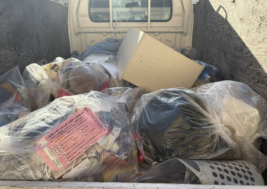 愛媛県東温市で賃貸物件を管理されている法人様より、入居者が残していった棚や布団、食品ゴミなどの残置物撤去についてご相談をいただきました。個人で物件管理をされているため、お一人では片付けが追いつかない状況に加え、共用のゴミ捨て場には未分別のため回収されずに放置されたゴミもあり、早急な対応が必要な状態でした。