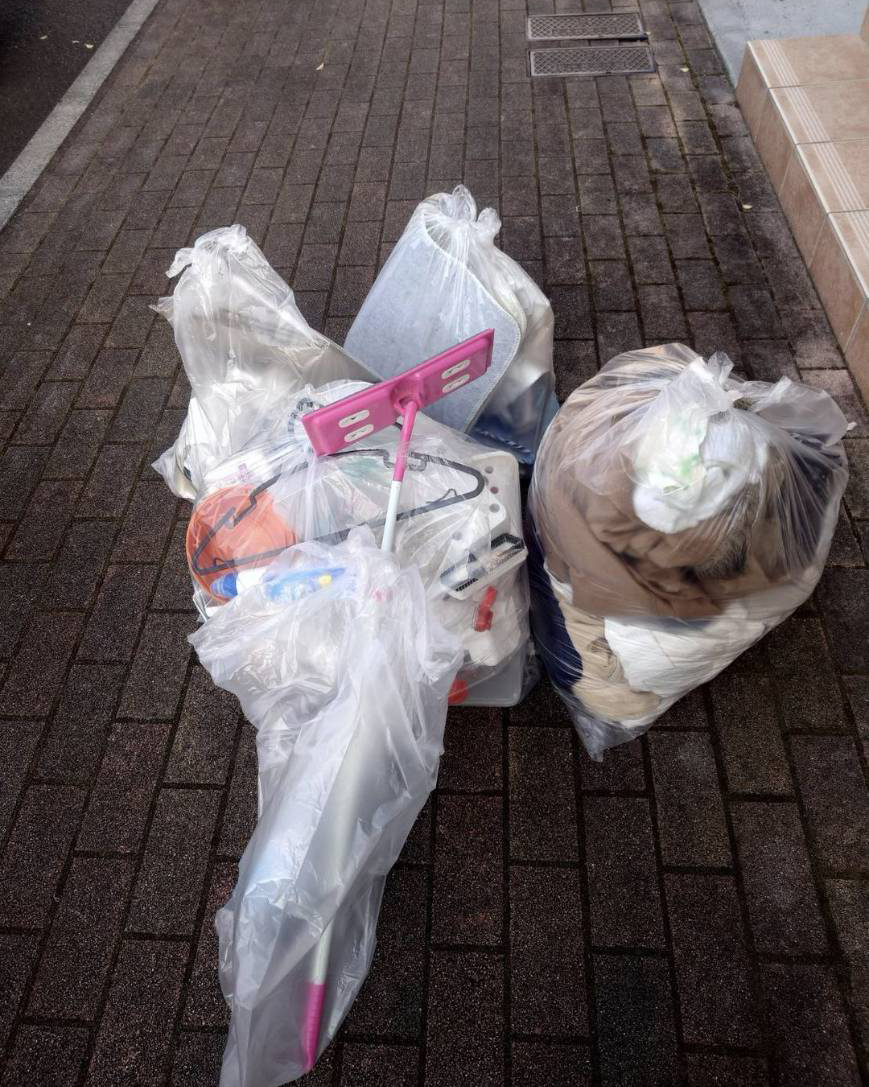 不用品回収業者の愛媛セーフティでは、こうした急なトラブルにも即日対応が可能です。今回はゴミ袋4袋分ほどの不用品を分別の手間なく、そのままの状態で回収いたしました。お客様は引越し作業そのものに集中でき、余計な手間やストレスを感じることなく、無事に明け渡しを完了することができました。